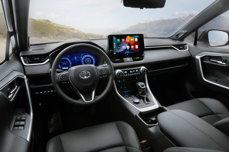 Le RAV4 Hybride Branchable 2025 se distingue par sa motorisation hybride rechargeable, permettant une conduite en mode tout électrique jusqu’à 72 km et et une autonomie étendue grâce au moteur à essence pour les trajets plus longs.