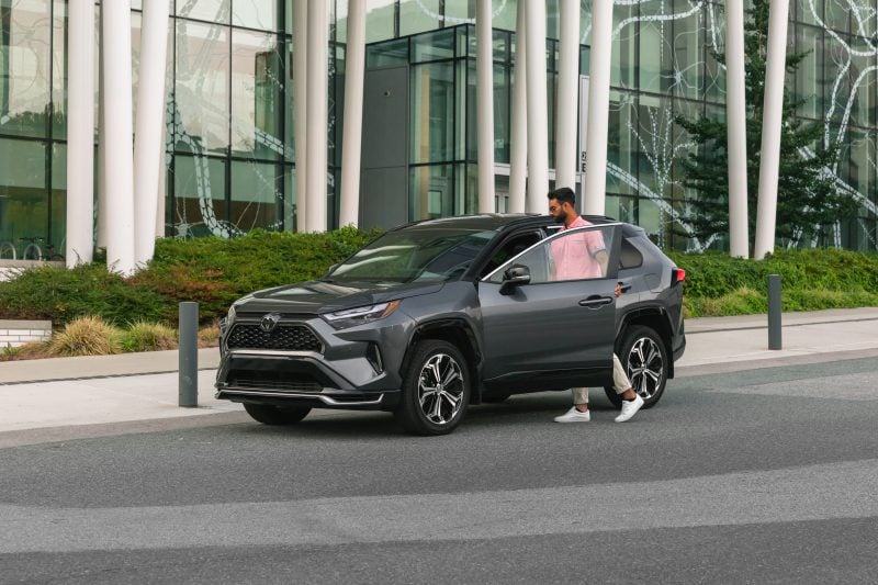 Le RAV4 Hybride Branchable affiche une allure dynamique avec des lignes épurées.