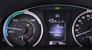 Pour procurer une visibilité optimale et rendre encore plus agréable la conduite éconergétique, la Camry hybride est dotée d'un groupe d'instruments exclusif avec indicateurs de système hybride et de consommation. Les jauges de consommation ponctuelle et moyenne permettent au conducteur d'évaluer facilement le rendement énergétique associé à sa conduite.